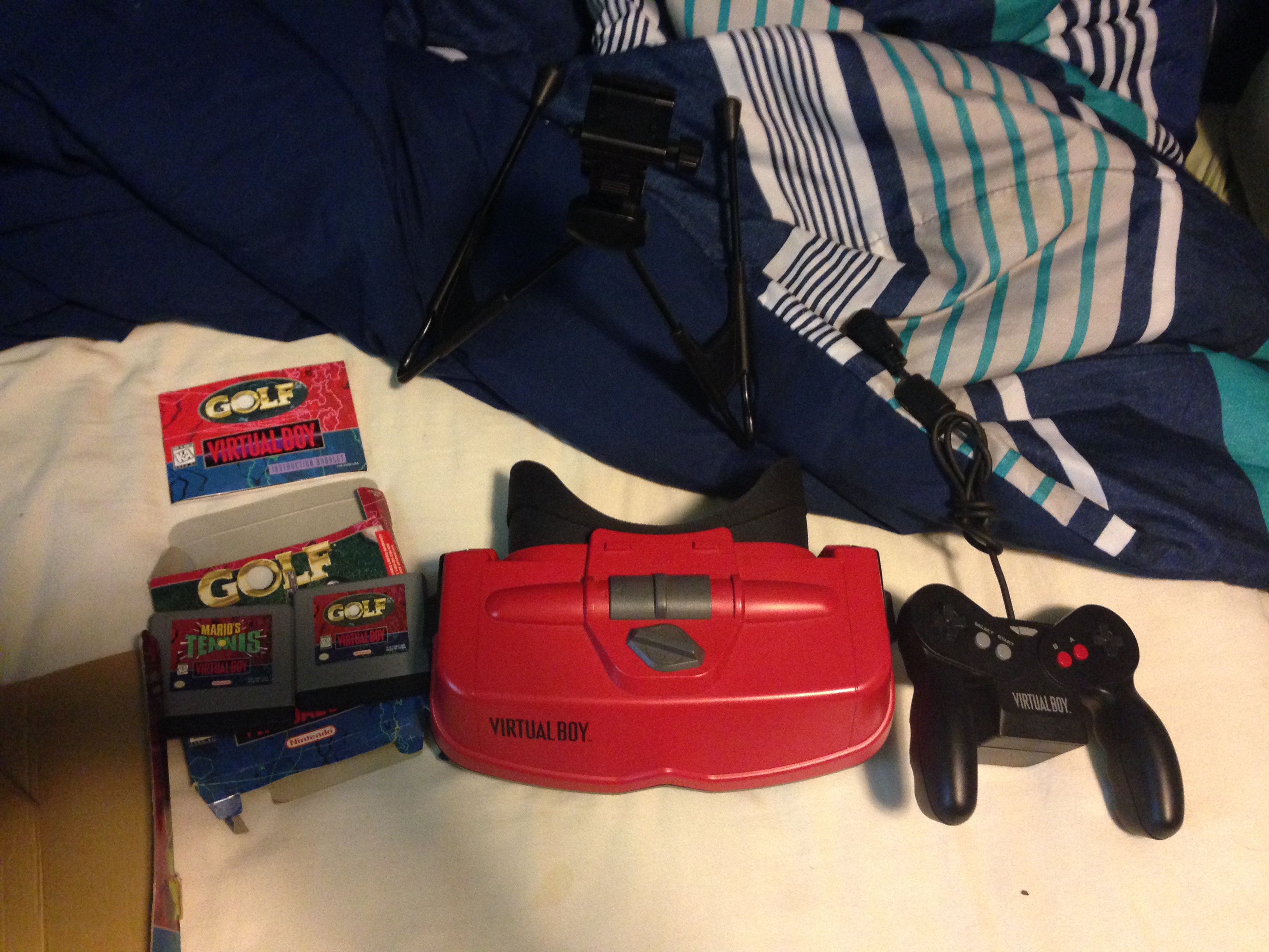 1 – JDxImpetusI bought a Virtual Boy today for $60! Came in the box with the console, the stand, one controller, Tennis and Golf. I don't think I've got everything with it, but I feel like I picked this up at a good price.