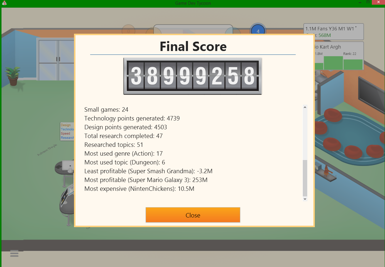 It's a really simple game on the surface and honestly a pretty ridiculous concept, but they did it well. The game was actually really complex, and there are a lot of things that influence how well your game does. It took me about three tries to get past the N64 era, although after that I started to get the hang of what the good combinations and priorities are.And discovered Steam game guides, but we won't discuss that now.
