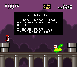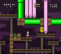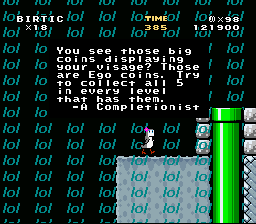 course clear and time counter still appears at the end goal, regardless of if it does anything also the player's name glitches split paths doesn't appear on the OW at the right event the conveyor belts move the player when they are inside of it one of the conveyor belts tiles in split paths is missing every level needs dragon coins change dragon coin graphics fix the "death powerup" in you start on a roof add the e' tile in Pokemon on the title screen flip trololo head to face character add midpoints damn it blinding exhaust needs green digletts make <3 LEAF <3 a vertical level fix the chargin chuck issue in split paths red digletts needed in split paths why is there a wall in funky factory anyway it looks ugly Birtic's falling while swimming graphics are odd green diglett's palette is odd waterfall exanimation needed in lol