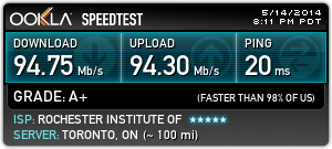 I think I may have officially beaten everyone out (except for KYA at work) with the on-campus speed when connected to LAN: