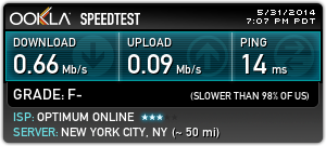 Yeah, the download speed at my mom's house is a bit more realistic, although that upload speed is atrocious.