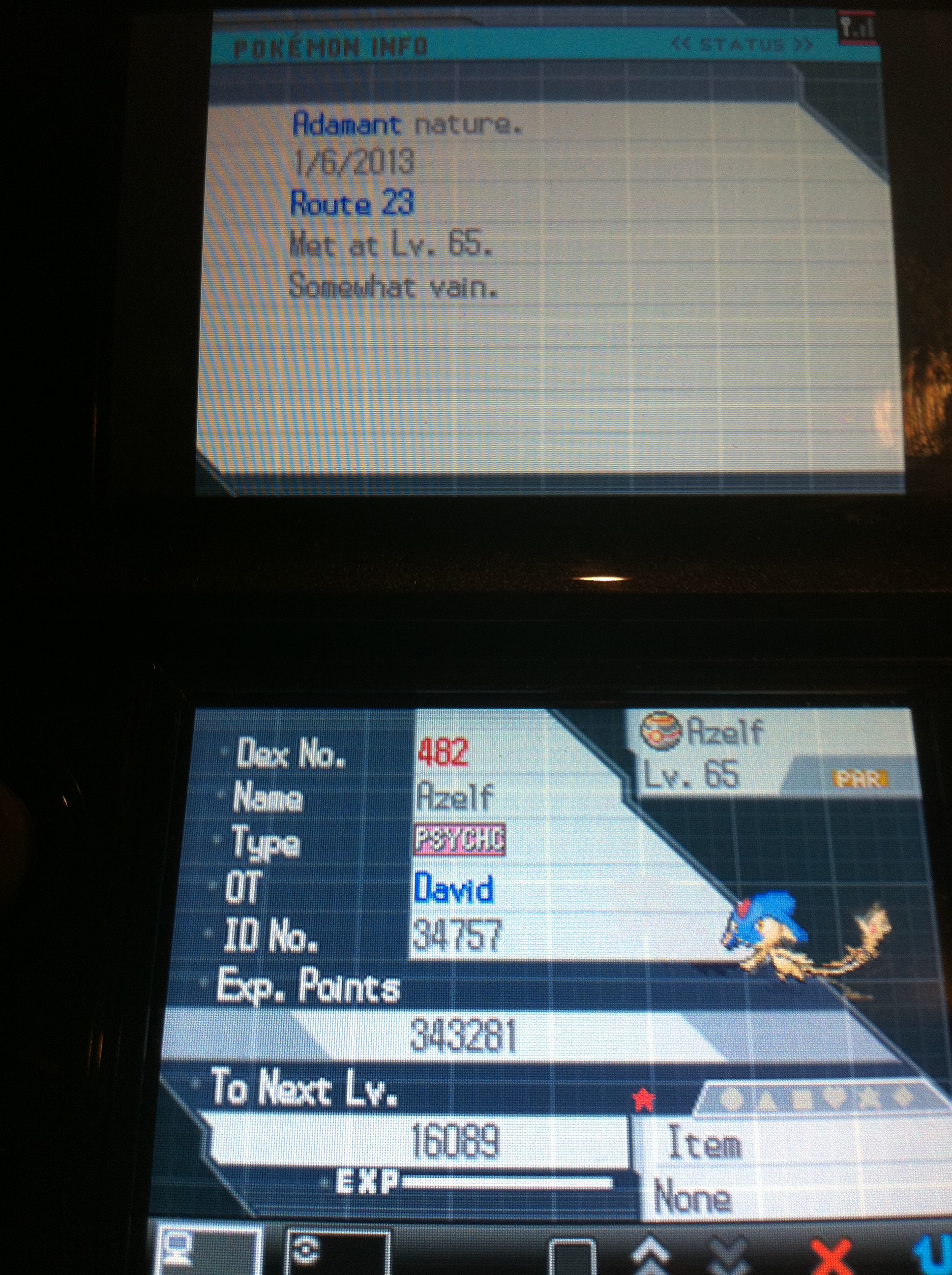 (I'm actually surprised how quickly I found that shiny Azelf, so this gives me a ton of motivation to hunt for a shiny Uxie)