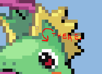 STEP 7) Just envelop the whole sprite with your tool and click, then ASODIFHAIOSYFGHA! You've changed that color on the whole sprite.
