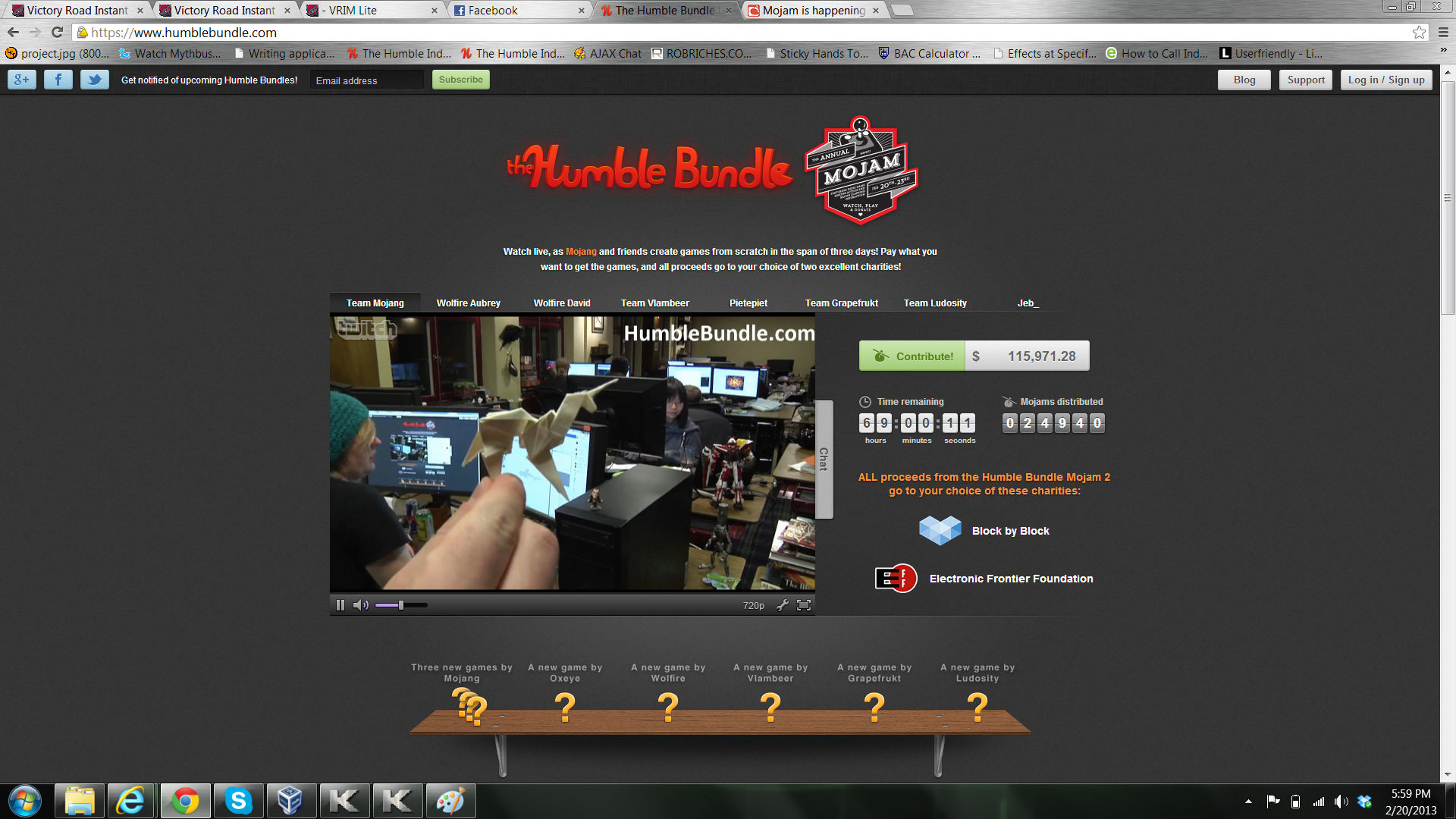 You can watch them at work if you go to the site: https://www.humblebundle.com/?mojam2