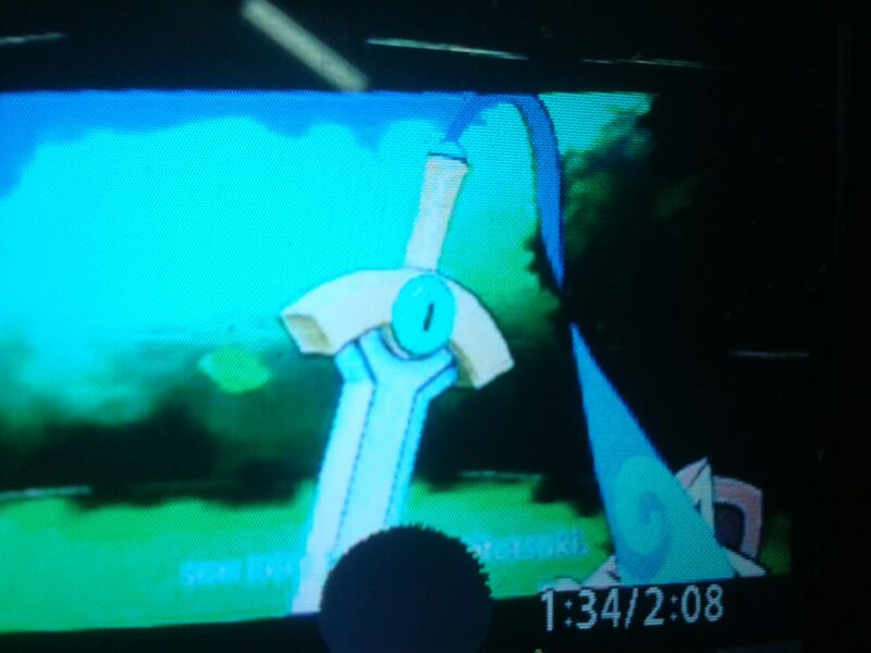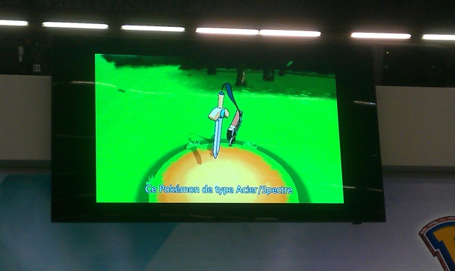 The Japan Expo has revealed a new Steel/Ghost Pokémon known as "Honedge" in English, "Hitotsuki" in Japan, and "Monorpale" in France. It resembles a possessed sword, with what appears to be a ghostly hand emerging from an ornamental extension of the hilt. It is also able to unsheathe itself (via said "hand") during battle. Its sword-like appearance and human-like limb are referenced in its name, with "Hito" meaning "Person", and "Tsuki" meaning to thrust, lunge, or stab. Pictures of it in battle against a Golem may be seen below:
