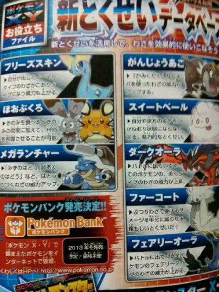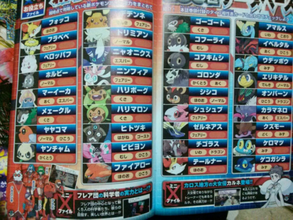 Scans of the latest issue of CoroCoro are surfacing and with them comes lots more new X and Y info. New Pokemon names are the Japanese name.