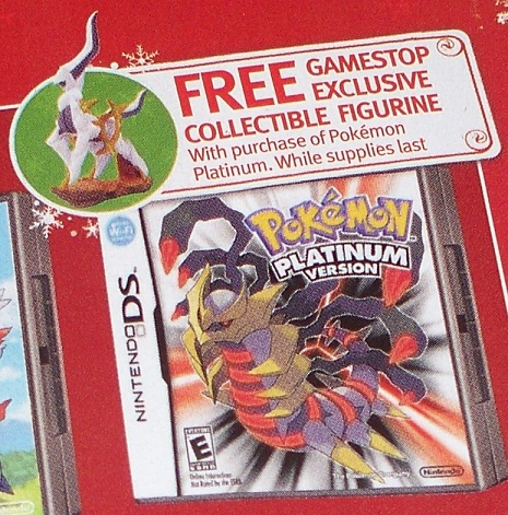 At GameStop, while supplies last, Pokémon Platinum purchases will come with a free Arceus figure.