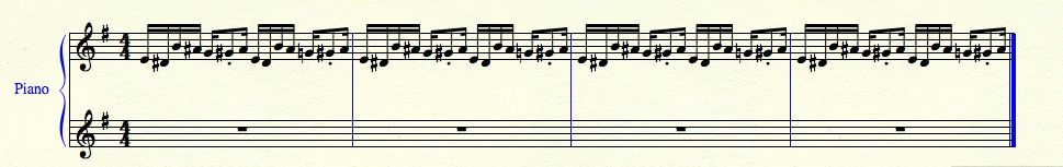 Now lets speed it up a bit, and write it with eighth notes rather than quarter notes ("mansion2"). Nothing too special here, it's just faster.