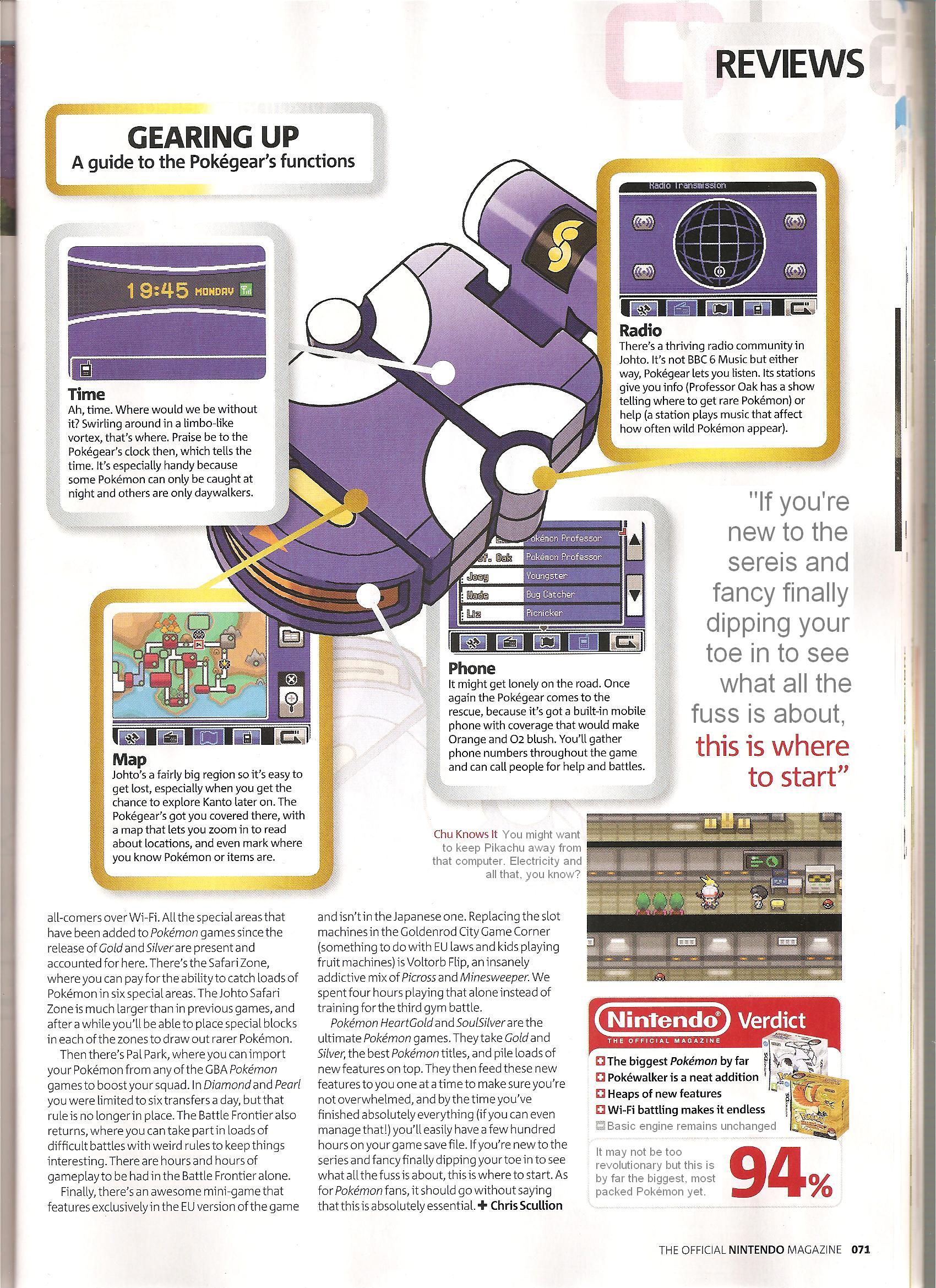 The Official Nintendo Magazine (UK equivelant of Nintendo Power - Though completely separate) has just shipped it's newest issue. This issue claims to have the world's first English review of the two newest Pokémon games, so I've scanned the pages for your pleasure.