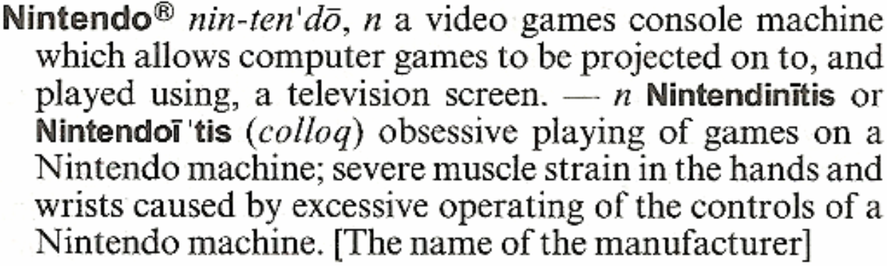 Nintenditis is the name of a tennis-elbow/carpal tunnel-like syndrome. Said syndrome came about because apparently idiots were holding their Wii Remotes incorrectly while playing Wii Sports' tennis game and ended up effing up their wrists.