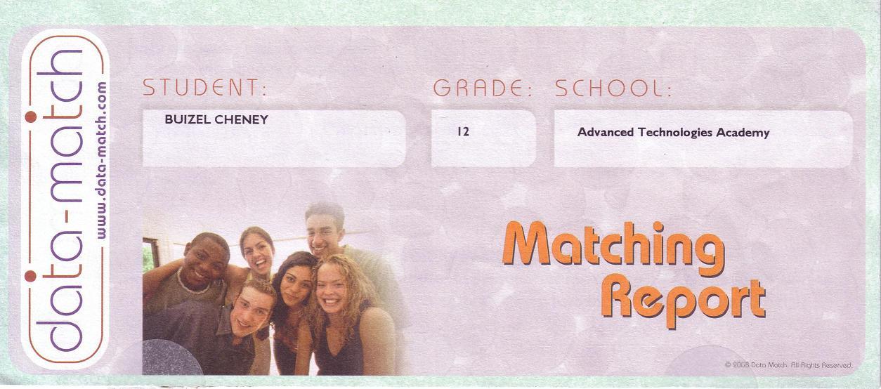 The DataMatch is one of those school things where you can find other people with similar results to your own. Most of the school participates, so I decided that since it was my senior year that I should do something funny. I put my name as "Buizel Cheney" and it was accepted!