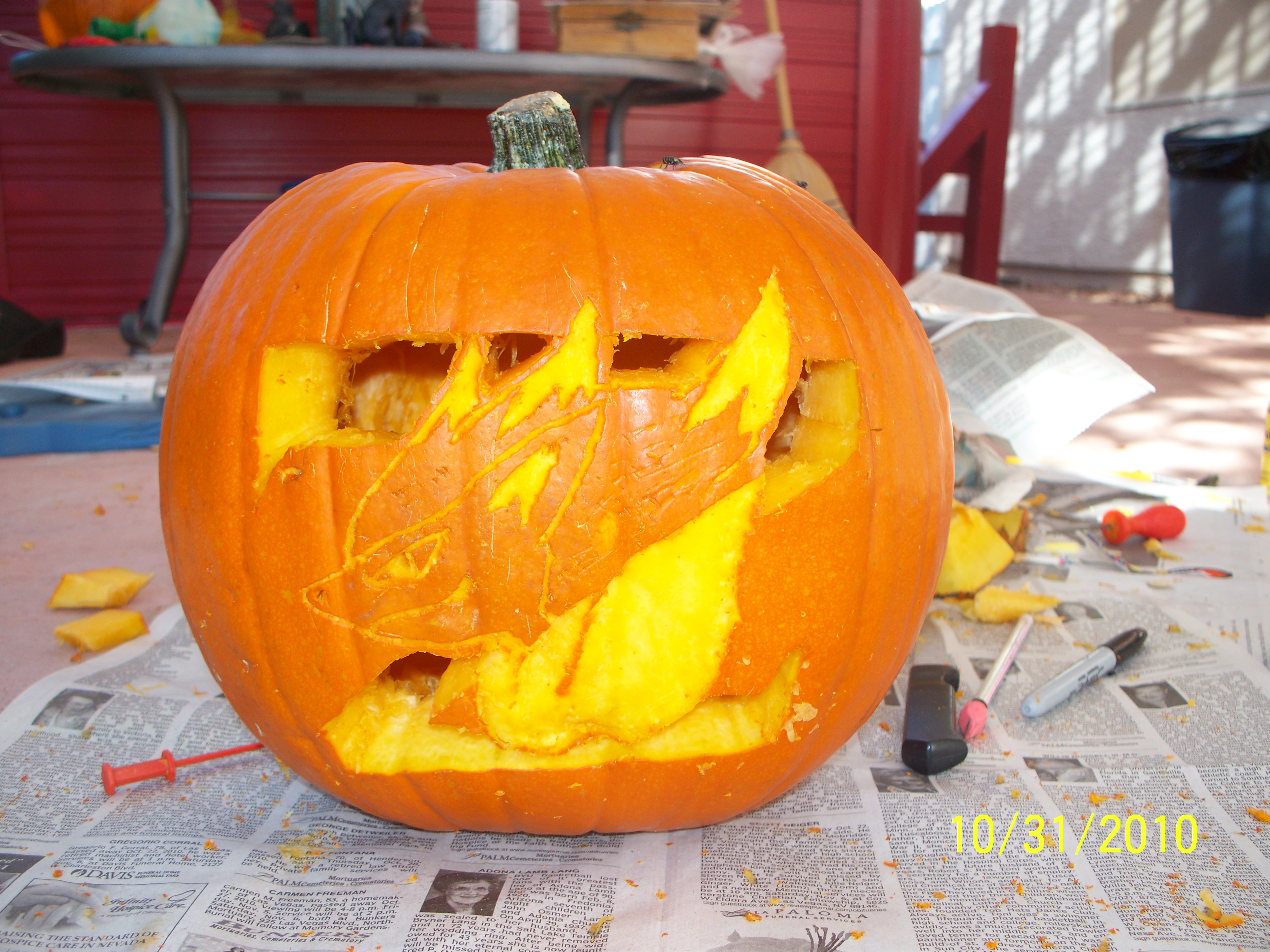 It's that time of the year again: Halloween. In the spirit of the day, I etched out a Zoroark in a pumpkin in about two hours. I think it came together quite well in all honesty.