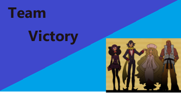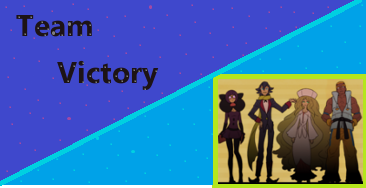 Can I have a banner, blue Background and A picture of the unova Elite four and word art saying TEAM VICTORY? Kthkx